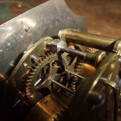 Il manquait plusieurs pièces au mécanisme et notamment l'ancre, pièce essentielle, elle a été commandée chez un fournituriste et a été montée sans problèmes. La perfection des fabrication américaine fait qu'il est possible de se procurer des pièces détachées neuves pour une horloge fabriquée il y a plus de 170 ans.