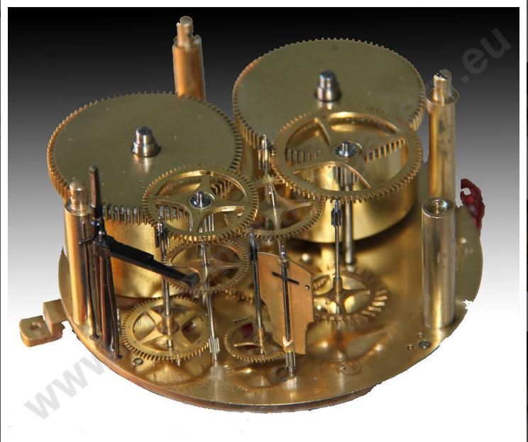Mouvement de la première génération, les roues sont très fines, les roues de temps, de centre et de moyenne ne sont pas alignées.