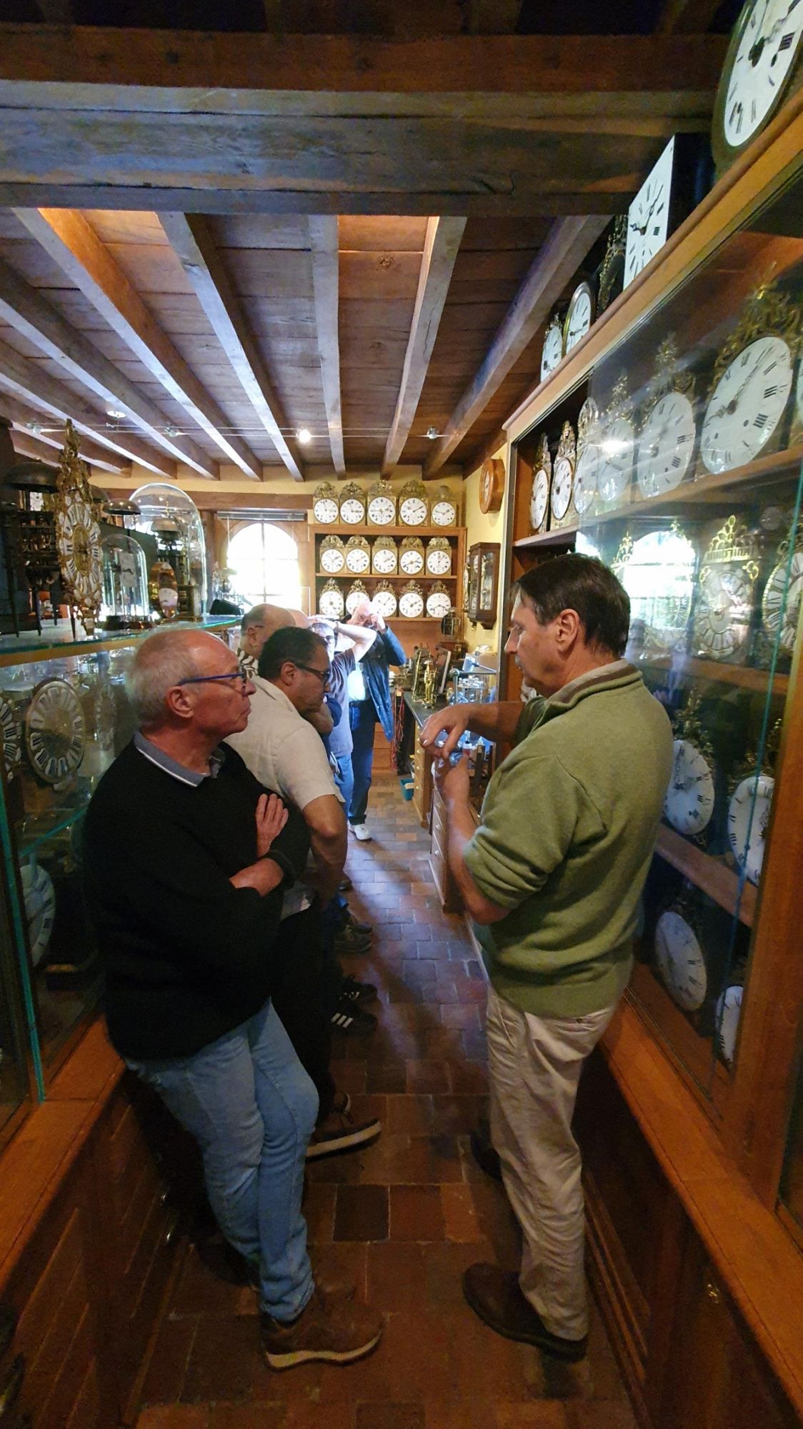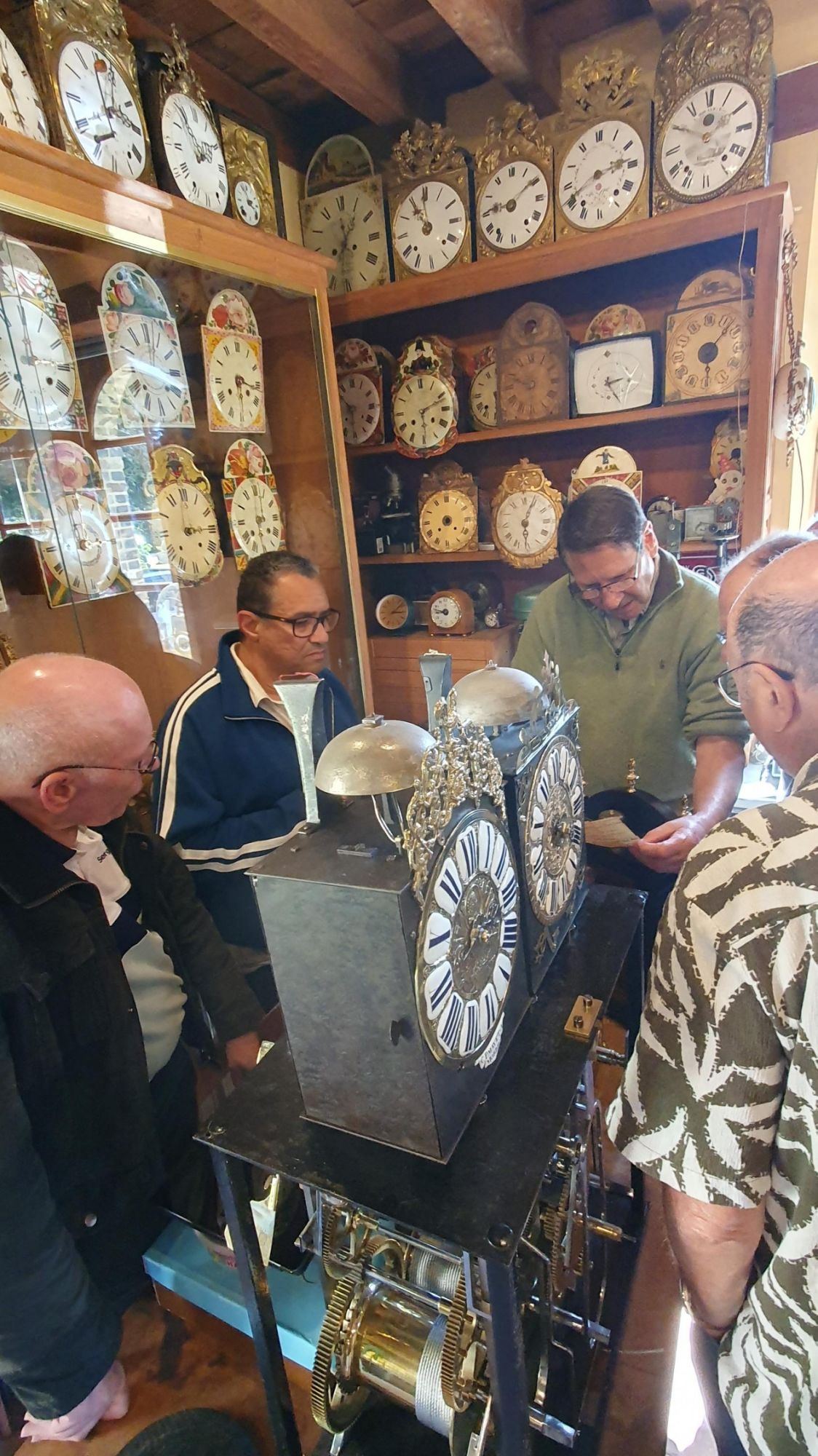 Notre ami Daniel a organisé une visite chez Monsieur Gilles Ribierre qui est un collectionneur éclairé et avisé de pendules lanternes normandes et de comtoises. Il nous a chaleureusement reçu chez lui pour visiter sa collection et surtout recevoir de sa part une impressionnante série d'explications techniques et historiques. Cinquante ans de patientes recherches se présentent à nous !