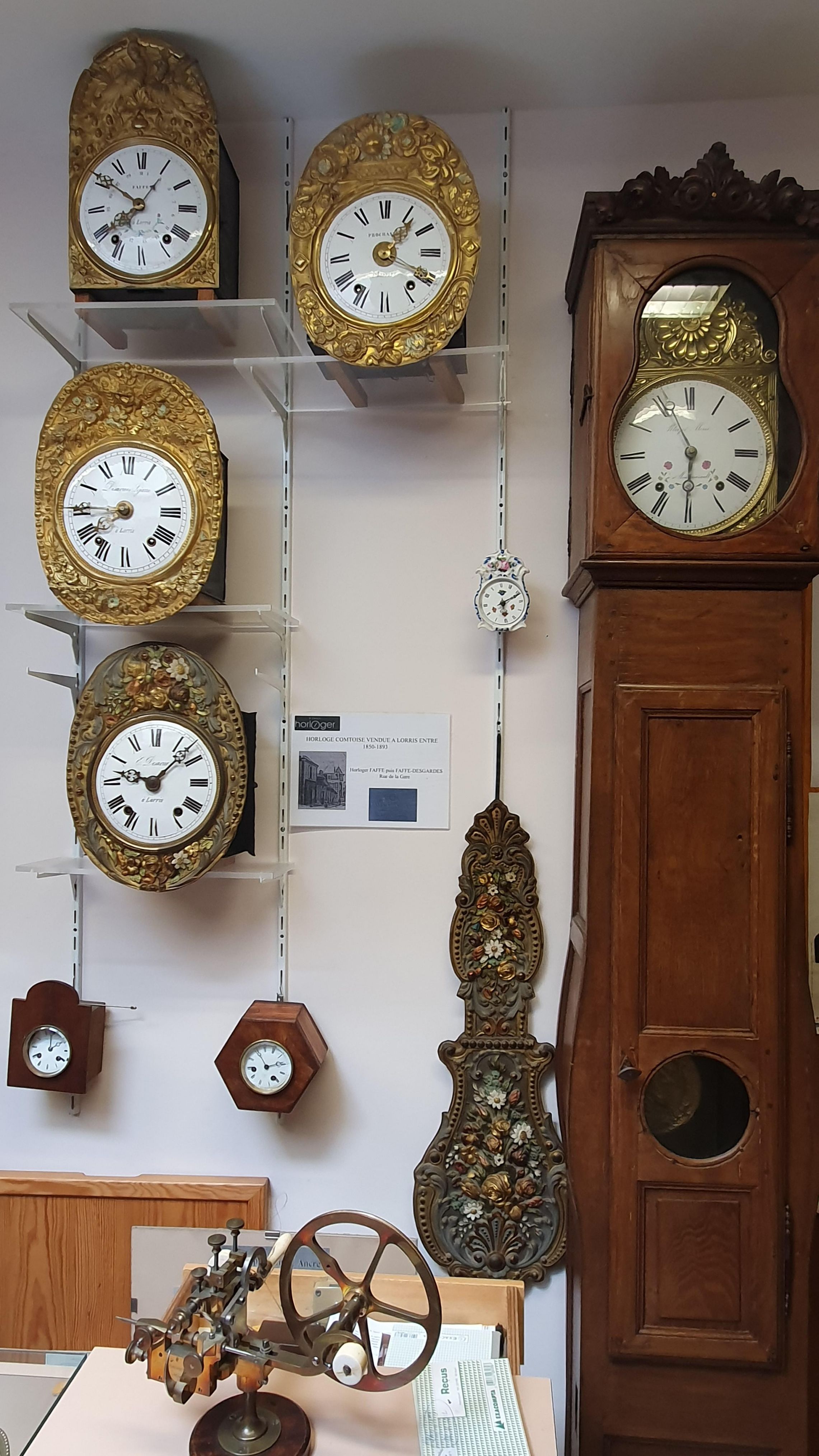 Le musée disposait d'un local, prêté par la mairie, pour stocker les nombreuses horloges, pendules, outils et pièces d'horlogerie que nous ne pouvons présenter sur nos expositions. Cette réserve nous permet de faire une rotation des pièces exposées pour maintenir l'intérêt des visiteurs au cours du temps.
