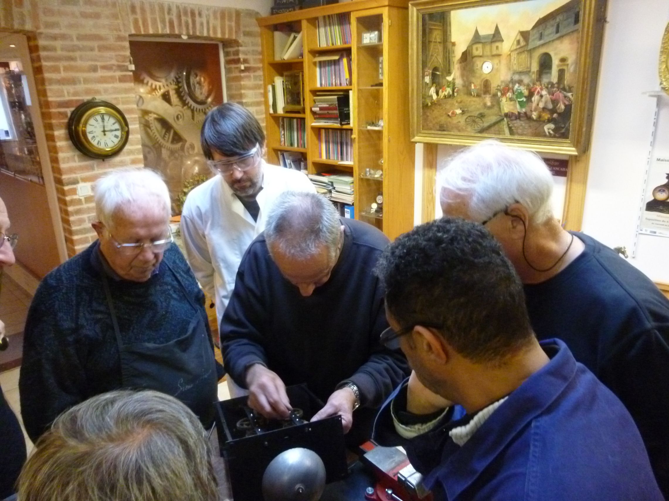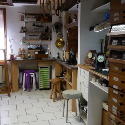 Dans un local attenant au musée en tant qu'adhérent, vous disposez de matériels et d'outillage d'horlogerie et surtout de conseils éclairés des membres. Vous pouvez pratiquer votre loisir sous toutes ses formes : documentations , explications, travail de nettoyage, remise en état (rhabillage), réparation ...etc.