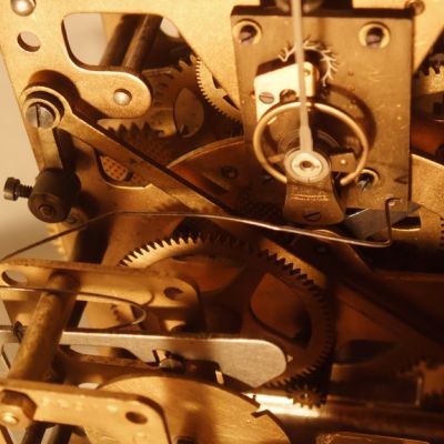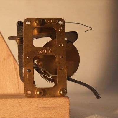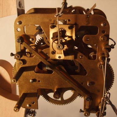 Il manquait plusieurs pièces au mécanisme et notamment l'ancre, pièce essentielle, elle a été commandée chez un fournituriste et a été montée sans problèmes. La perfection des fabrication américaine fait qu'il est possible de se procurer des pièces détachées neuves pour une horloge fabriquée il y a plus de 170 ans.