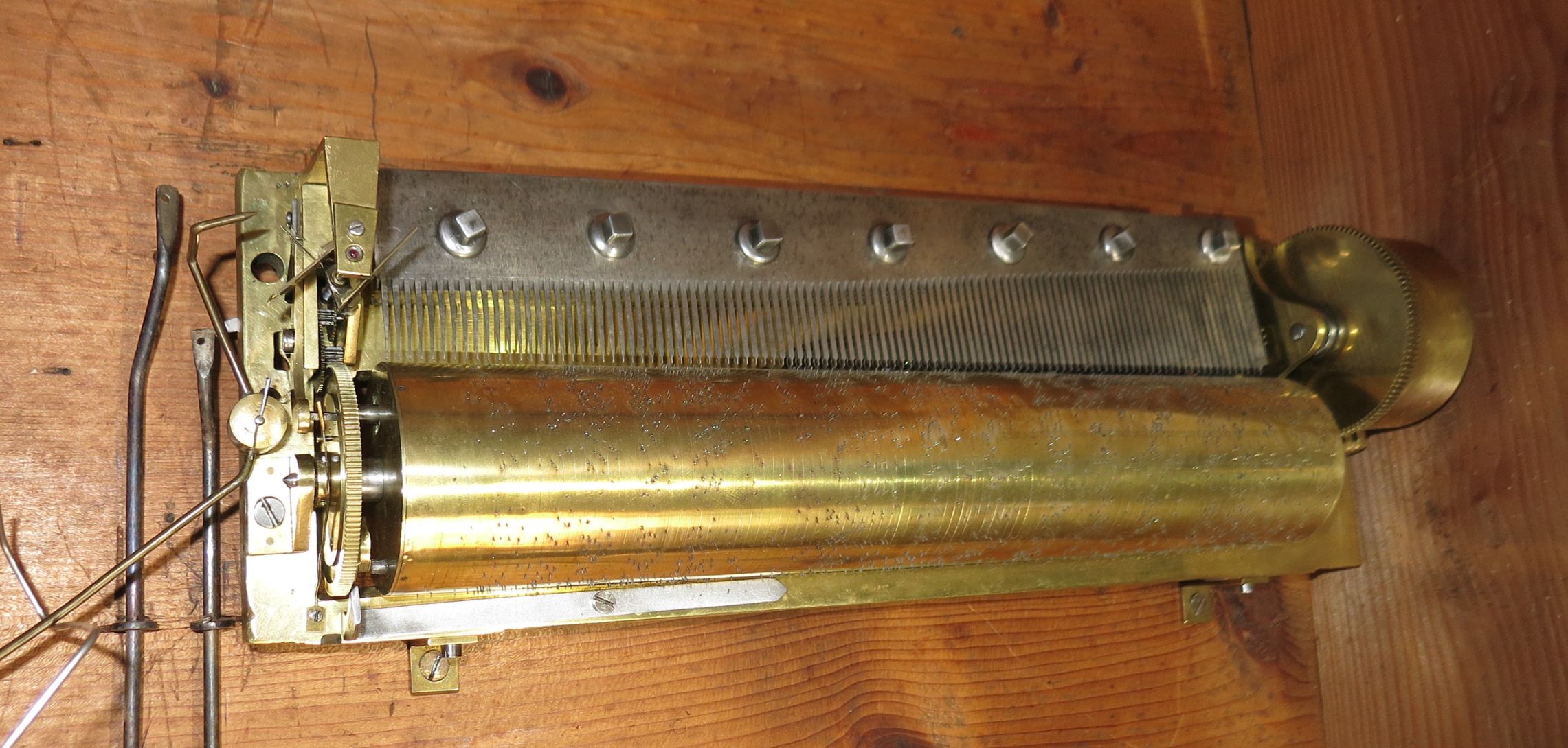 Cette boite à musique est déclenchée cinq minutes après la sonnerie des heures ou sur demande par les tirettes extérieures. Sa particularité est de jouer six airs séquentiellement. La durée d’un air est de 48 secondes.