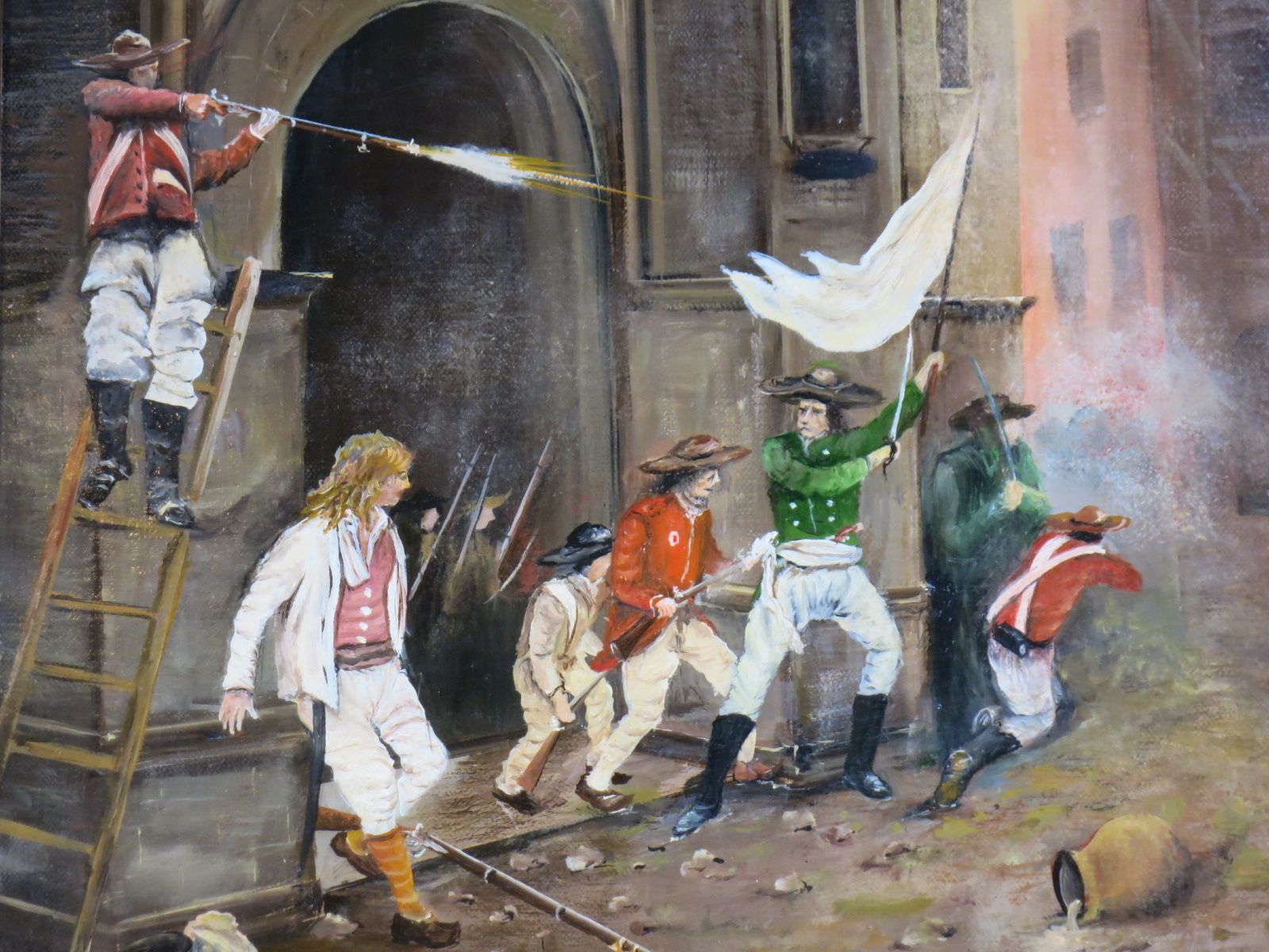 La scène de notre tableau se réfère à ce sanglant épisode. Malheureusement l’auteur de cette peinture n’a pas pu être identifié.