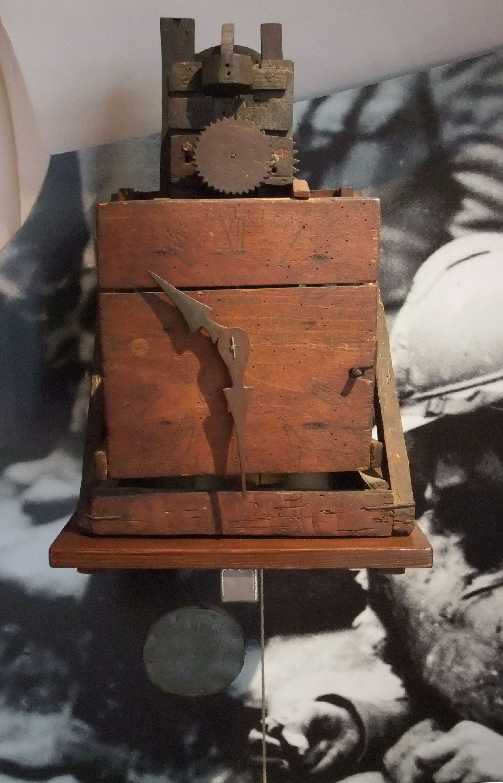 Quelques photos du mouvement tel que vous pouvez le voir au musée. Notez l'ancre très courte avec juste 2,5 dents sur la roue d'échappement.