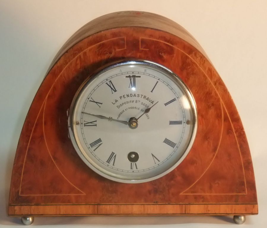 Cette honorable Société fait délivrer gratuitement, par sa Société anonyme de Caution et de Gérance (au capital de 6.500.000 francs), une pendule des plus artistiques, a tous les souscripteurs d'une Assurance-Vie-Décès, de la Compagnie Le Travail. C'est une nouveauté, et l'on va voir en quoi consiste son originalité. Décrivons d'abord cette pendule qui a pour nom : La Pendastrava et qui est visible pour ceux qu'elle intéresse dans les Bureaux de la Compagnie Le Travail, 79, rue de Clichy, à Paris. Cette belle pendule est en thuya, marqueterie citronnier, filet bois de rose, mouvementà quinzaine à sonnerie, cadran ovale argenté (type A), mouvement à huitaine, cadran rond argenté (type B), heures bleu de roi, lunette et pieds de bronze. Au sommet, se trouve une fente destinée à recevoir des pièces de monnaie, analogue à celles qui existent dans les appareils distributeurs qu'on trouve dans toutes les gares. Or, cette pendule — un vrai bijou — ne fonctionne, mêne remontée, que si elle a reçu chaque jour une pièce de un franc ou deux francs.