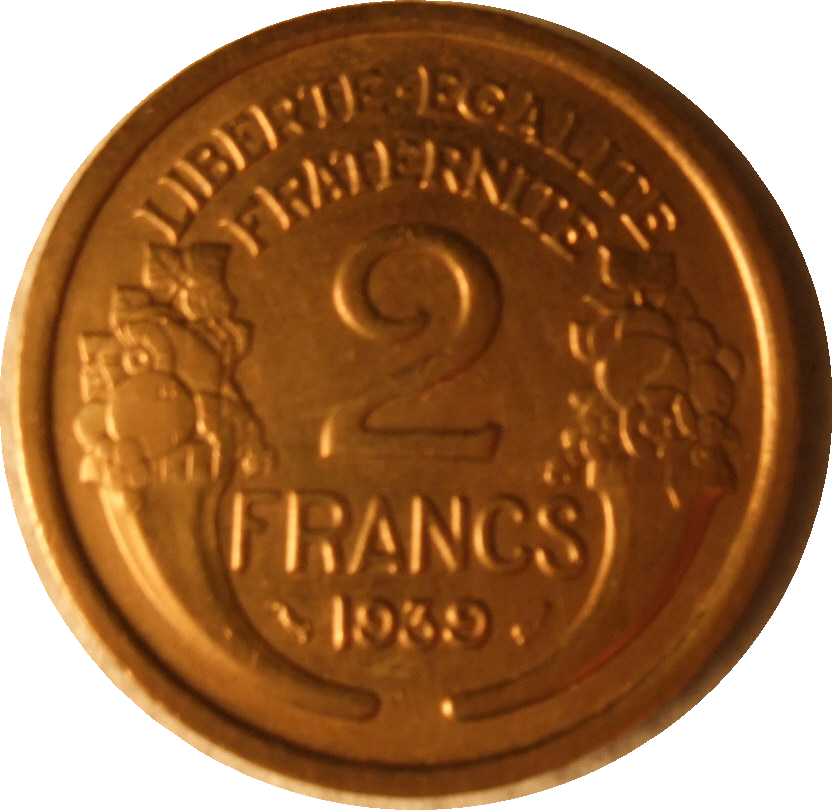 Remarque : à titre d'information la valeur en Euro constant d'une pièce de 2 Francs des années 1930 correspond environ à 1 Euro actuel.