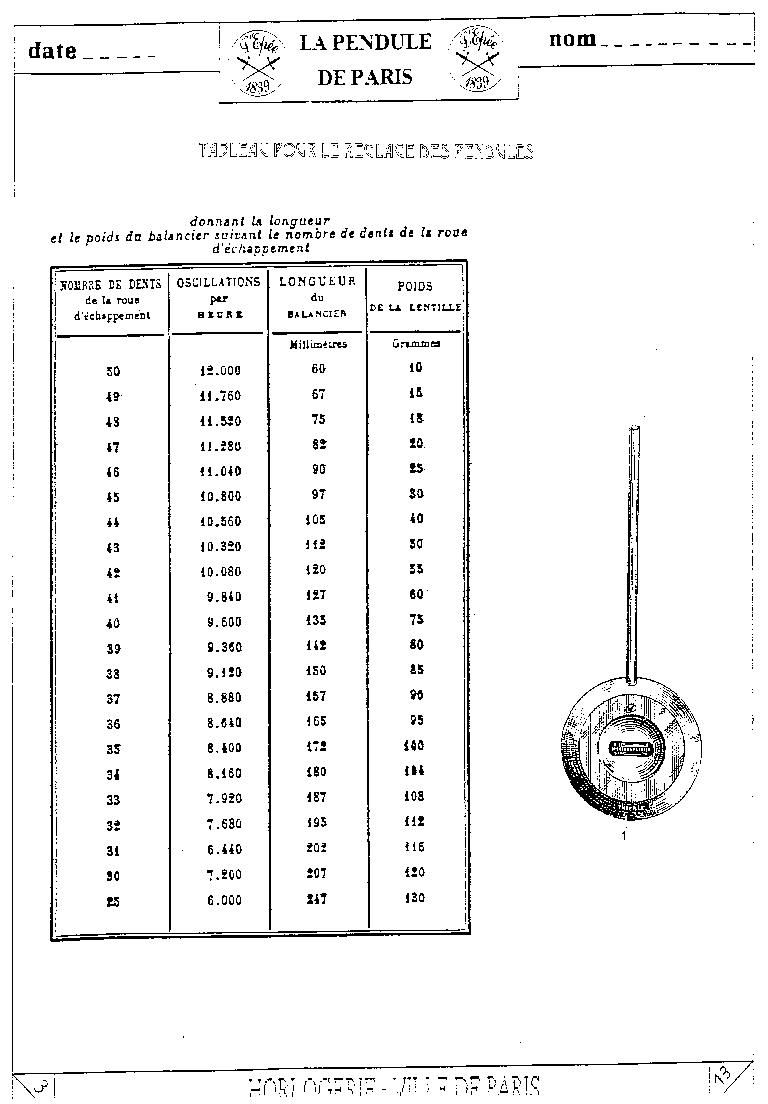 La longueur du balancier est primordiale dans une pendule de Paris, trop longue la pendule retarde, trop courte elle avance; il faut donc trouver un juste milieu. Pour ceci plusieurs méthodes sont disponibles.