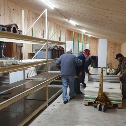 Mais la mairie a décidé de se séparer de l'immeuble où nous avions installé notre réserve. La chasse à un nouveau local était ouverte ! Après plusieurs mois de recherche nous avons trouvé un local à louer, qui, après quelques travaux, convenait tout à fait à nos besoins.