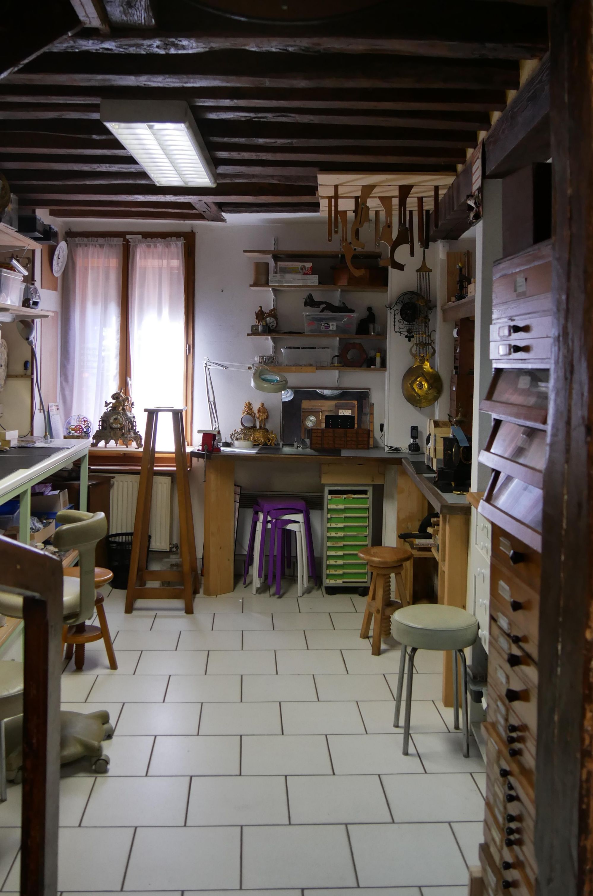 Le musée dispose en plus de ses expositions un atelier d'horlogerie avec tous les outillages nécessaires au rhabillage des pendules.