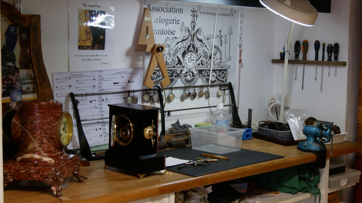 Il est animé par les membres de l'association qui font appel régulièrement à des professionnels ou des amateurs particulièrement éclairés, pour perfectionner les connaissances de chacun. Pour une description plus complète voir la page : L'atelier à pendule.
