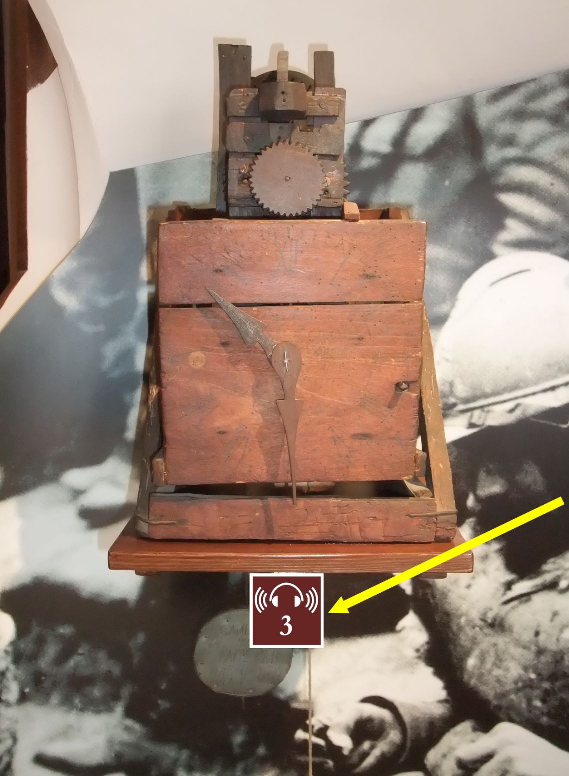 Avec le plan de visite, rechercher la plaquette avec le numéro correspondant qui est placé sur l'objet ou à coté. Ici, la pendule du "Poilu" avec son repère 3